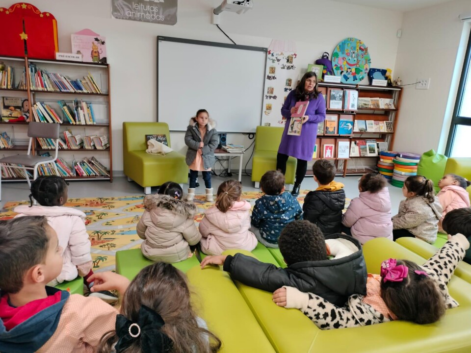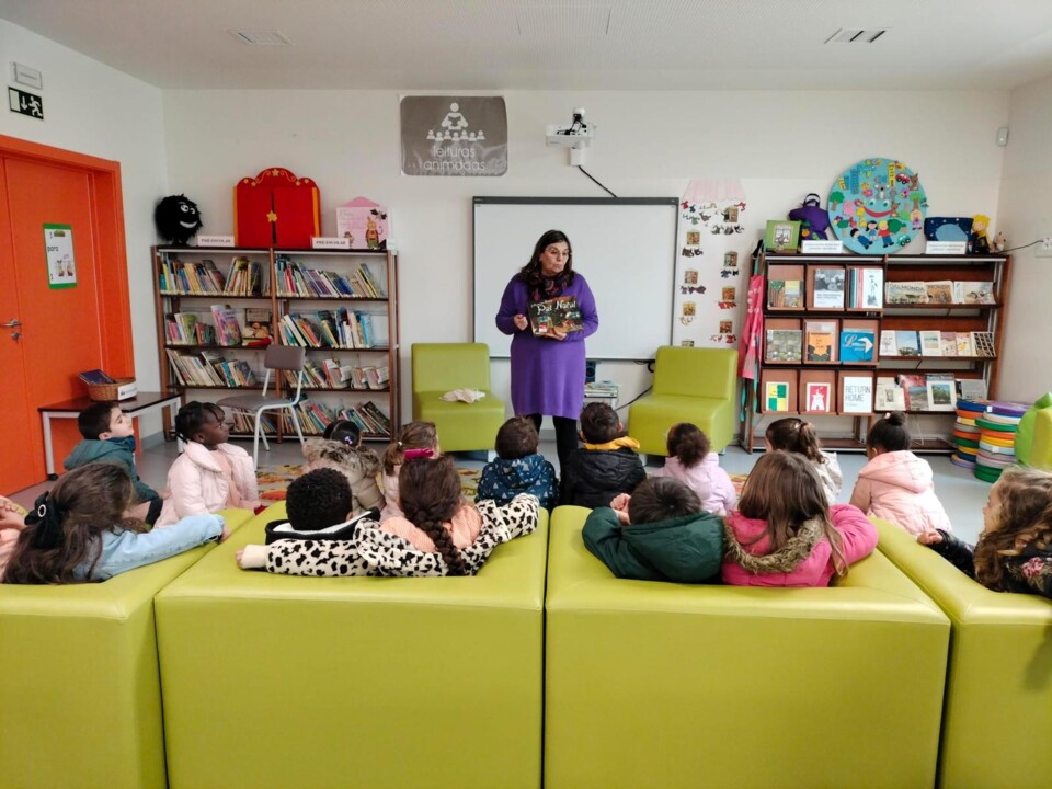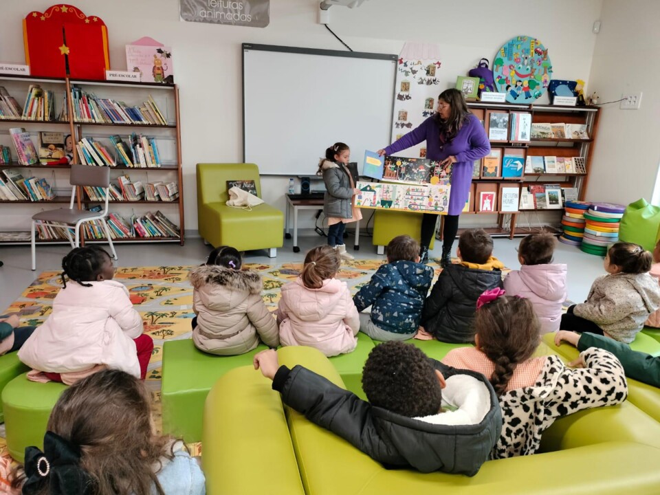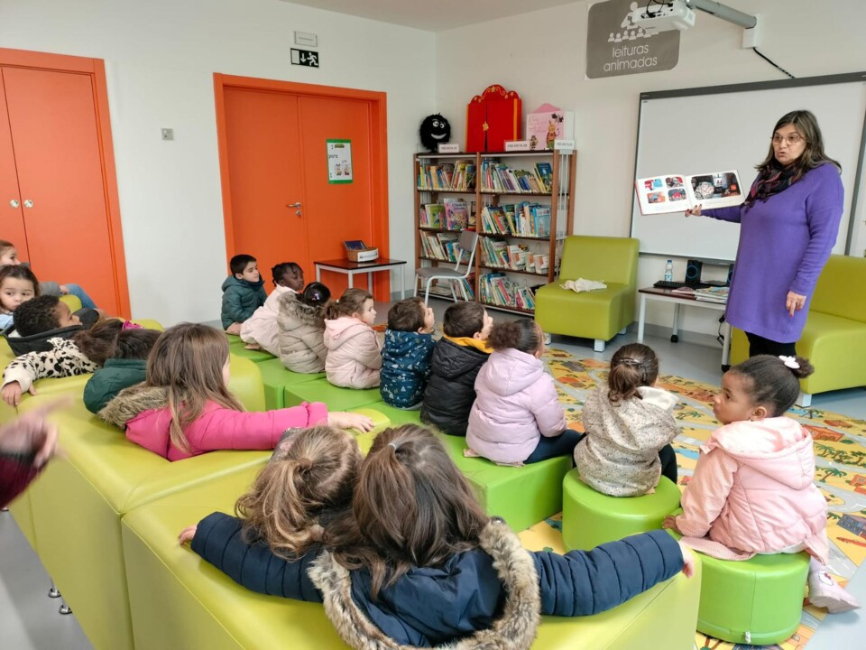 Os alunos do Pré-Escolar do Centro Escolar de Santa Maria e do Centro Escolar de Riachos ouviram alguns contos de Natal no espaço da biblioteca.